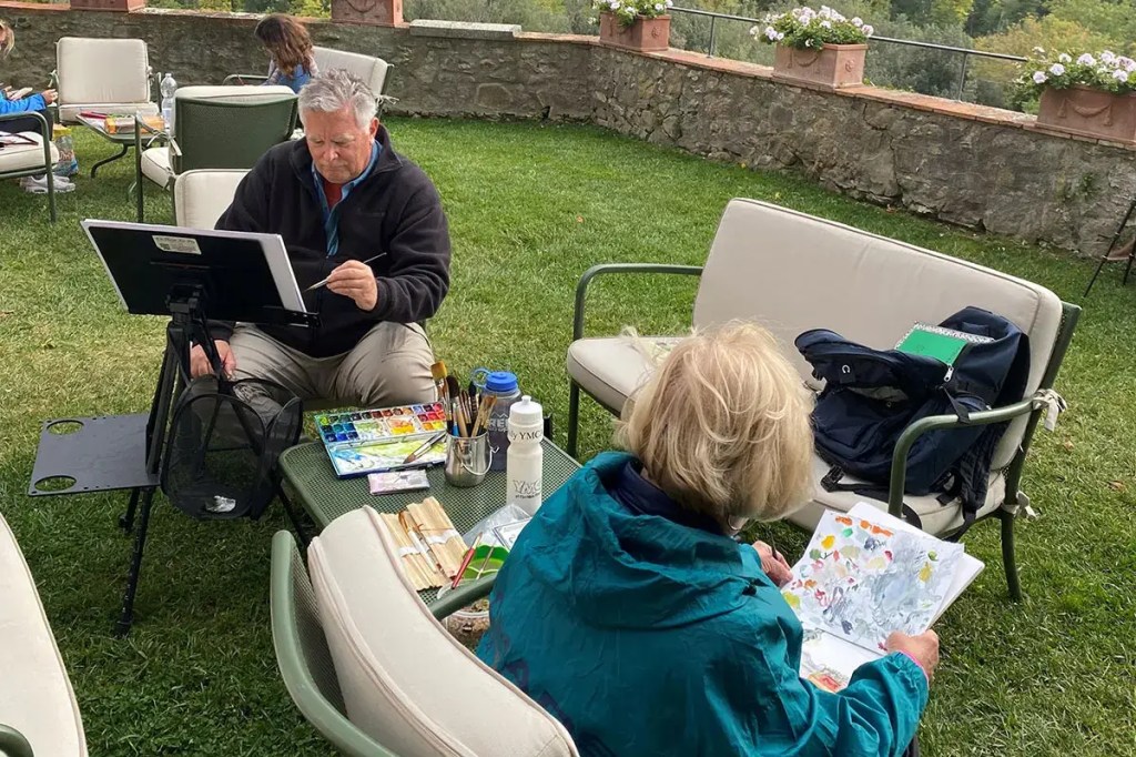 È anche un “quadro nel quadro”… Da anni un gruppo di facoltosi americani si riunisce a Dievole per dedicarsi alla pittura ad acquarello. Dividono la loro giornata fra pittura e passeggiate, premiati la sera da un cena accompagnata dai vini più prestigiosi della cantina.