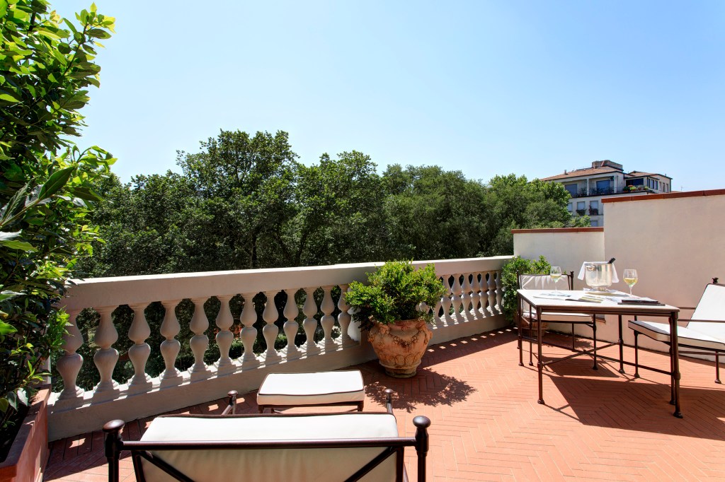 Salgo le scale, apro una piccola porta e entro nella mia suite: armonia di colori, lusso negli arredi ma anche semplicità e praticità. Mi affaccio e davanti a me si apre la più londinese delle piazze di Firenze. Che meraviglia abbandonarsi sul letto, lasciar scivolare via i pensieri quotidiani, trovare il tempo di leggere prima di un aperitivo e di una cena deliziosa, in attesa di James Bond.
